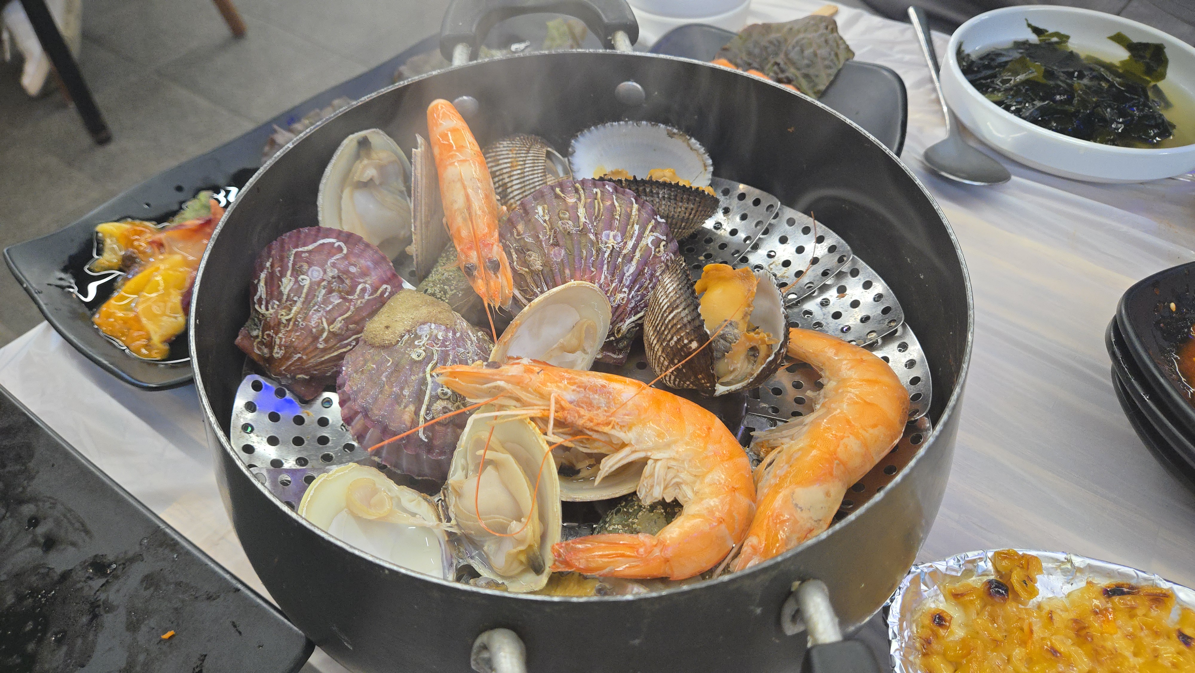 조개 찜도 나옵니다. 피고막, 새우, 가리비, 전복 등이 들어있습니다.