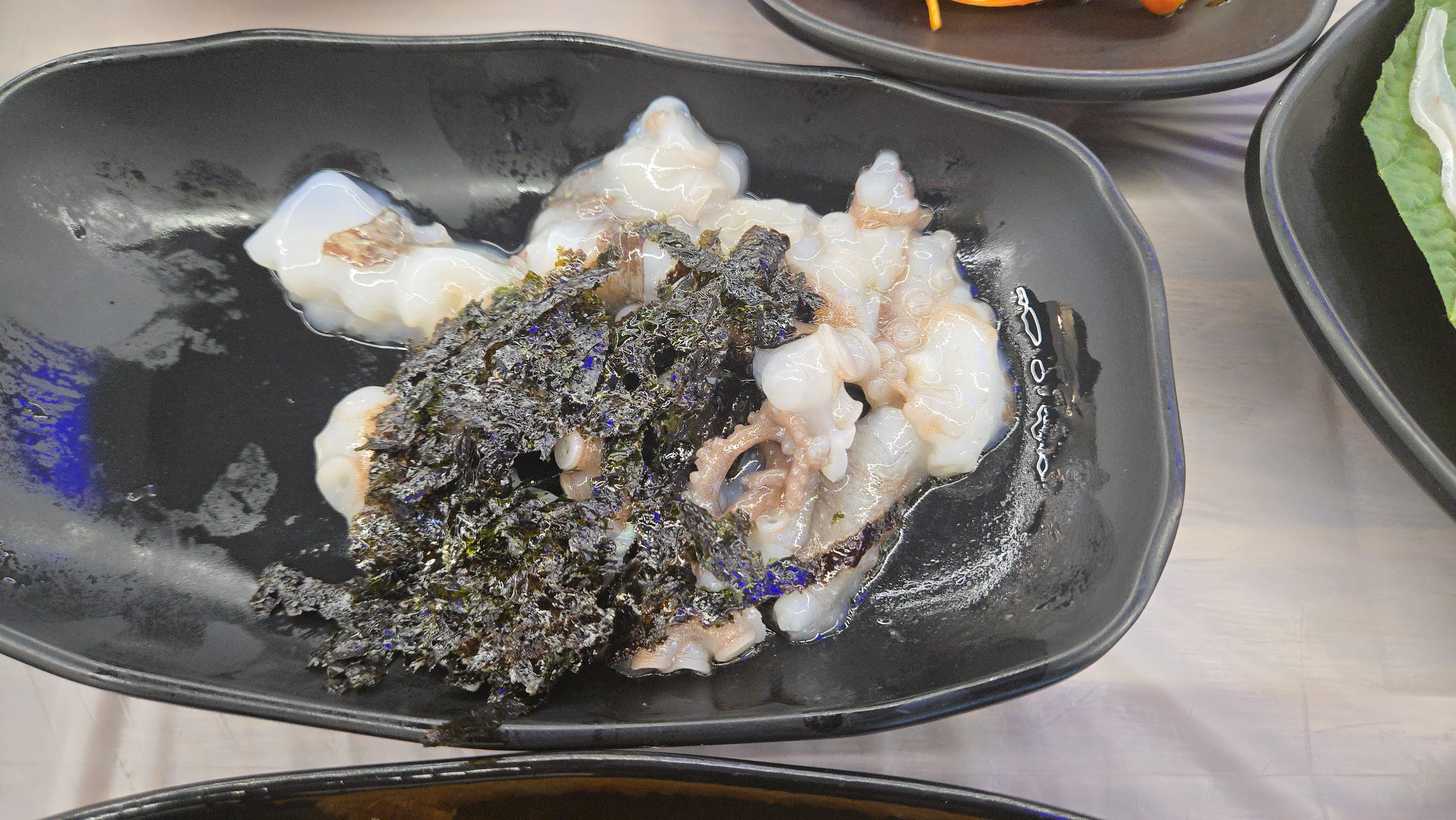 기본 안주에 소주를 들이키고 있으니 오늘의 메인 메뉴인 회가 나옵니다.