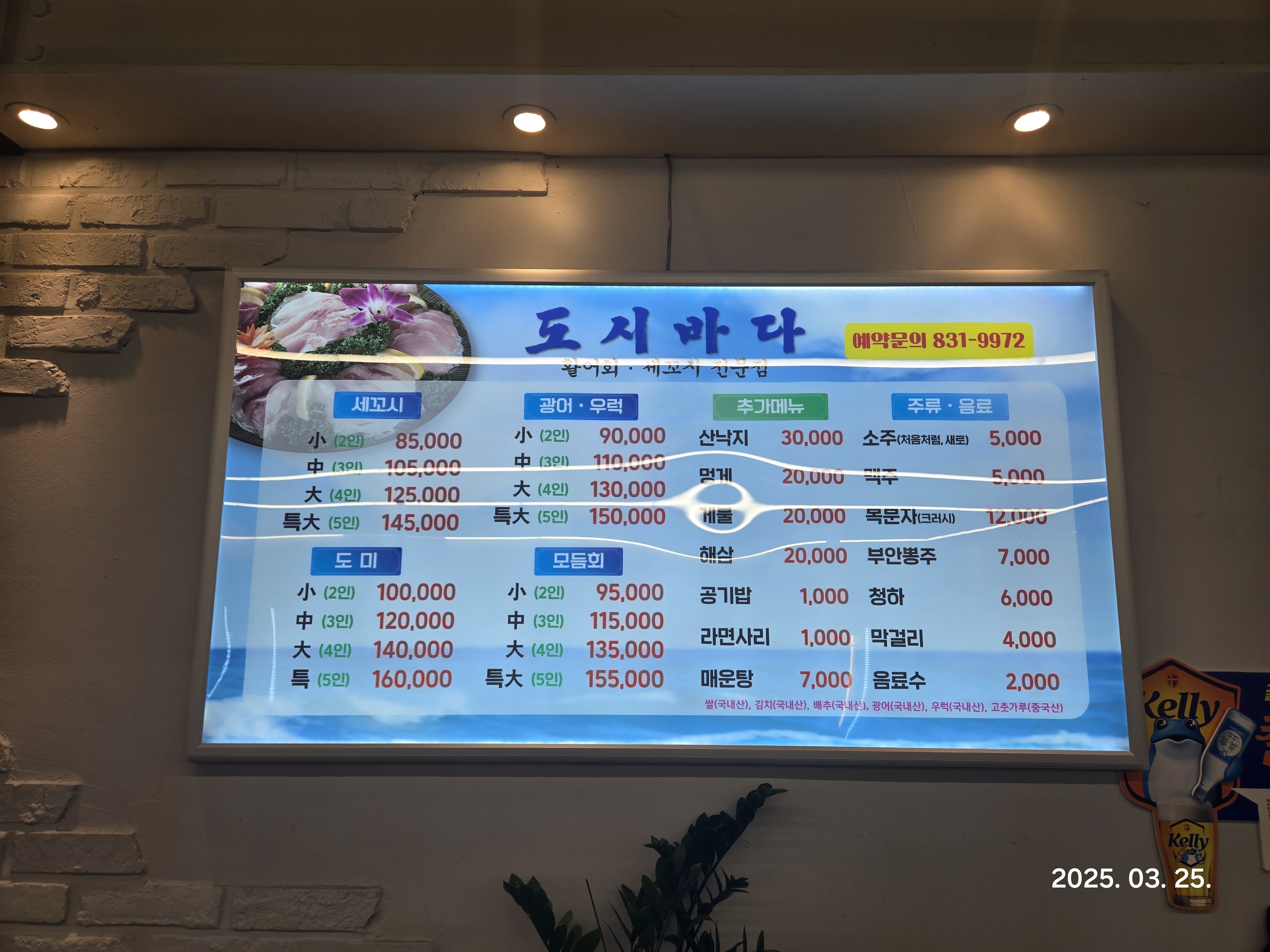 메뉴판에서 모듬회를 주문합니다.
