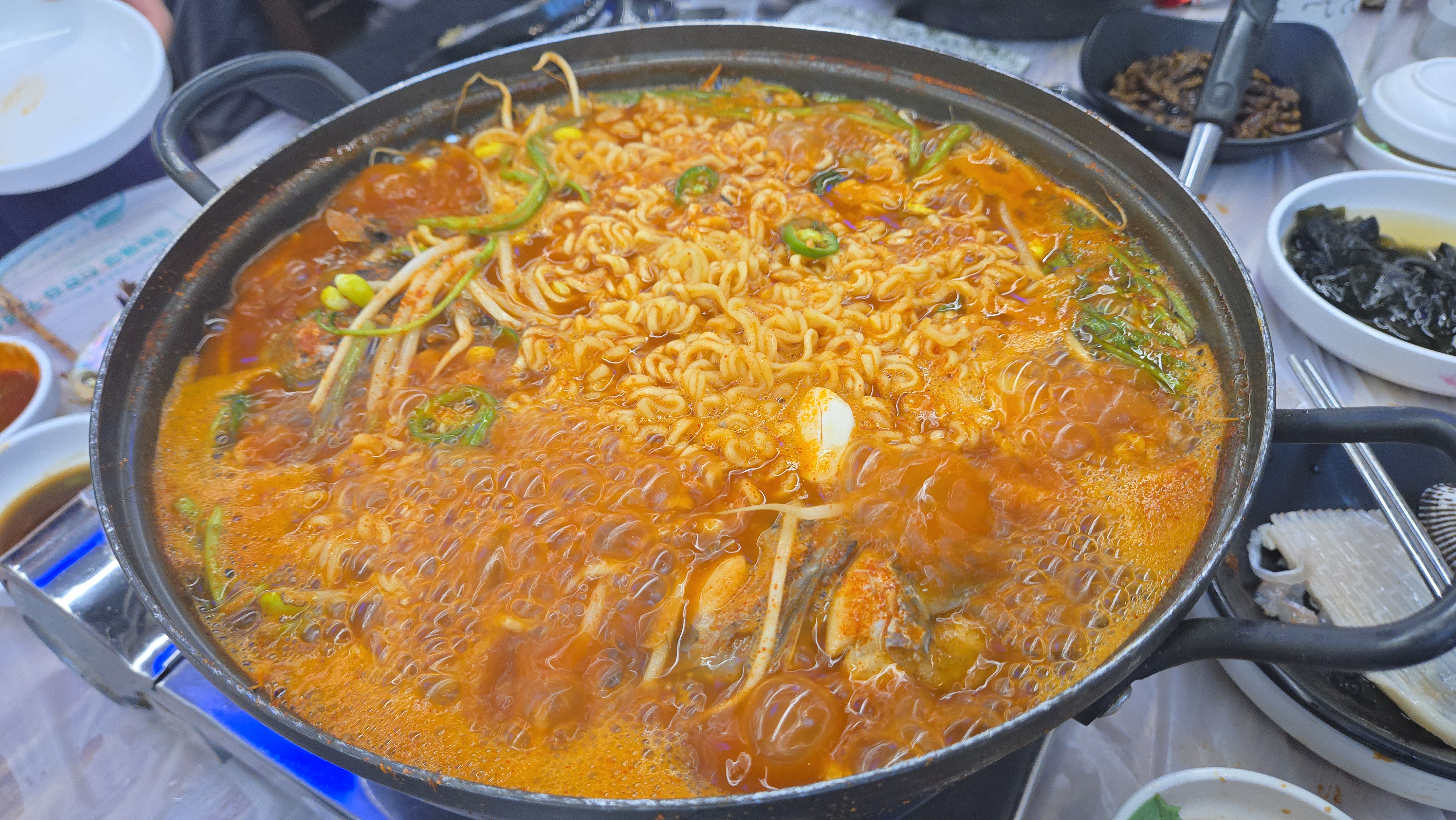 보글보글 끓기 시작하자 라면 사리를 투하합니다.