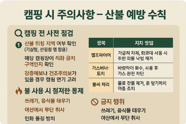 🏕️ 캠핑 시 주의사항 – 산불 예방 수칙