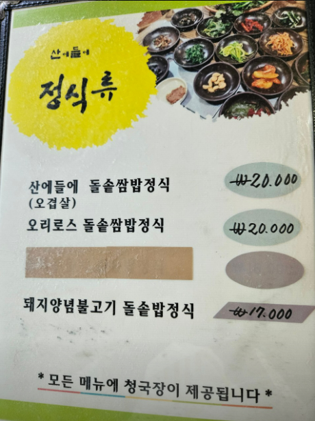 • 산에들에 쌈밥 20,000원