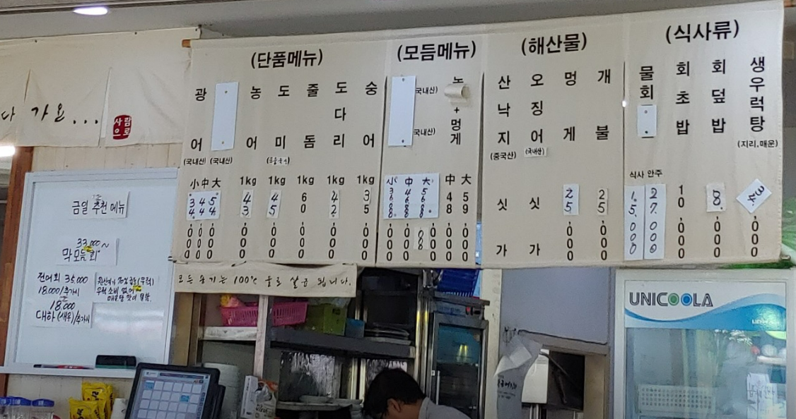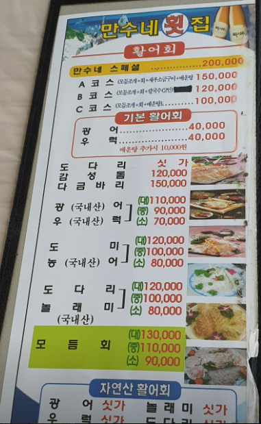 • 모듬회(소): 90,000원