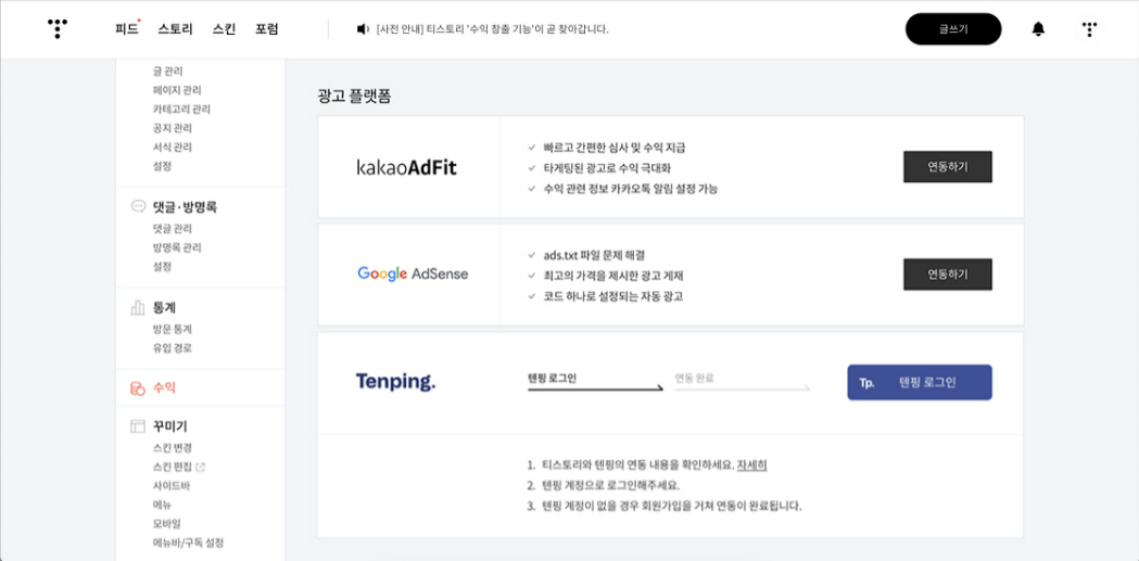 애드센스보다는 텐핑처럼 간편한 링크형 광고 수익 시스템으로 시작해보는 걸 추천드려요.