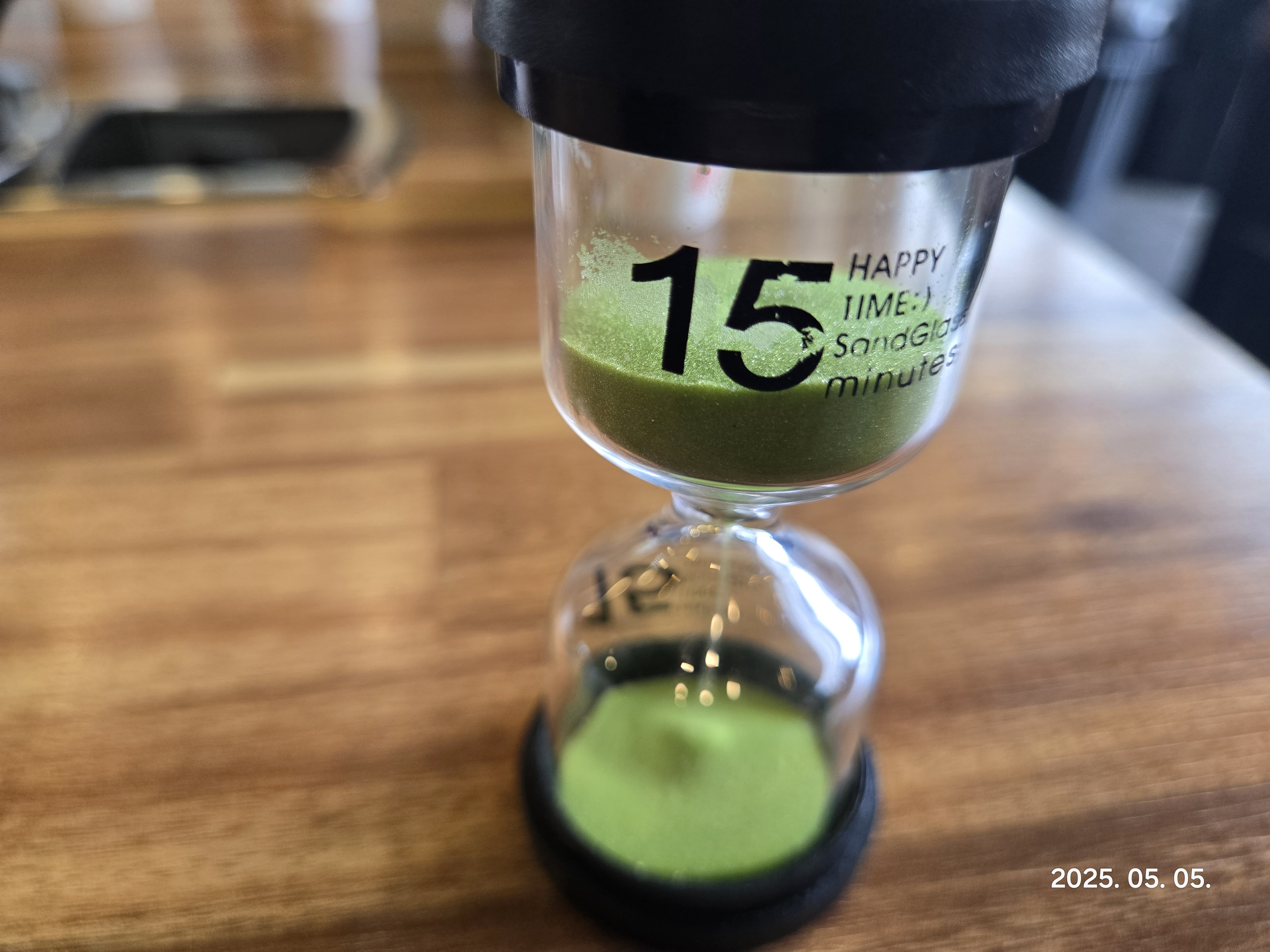 테이블 위에 함께 나온 15분짜리 모래시계를 뒤집고 기다립니다.