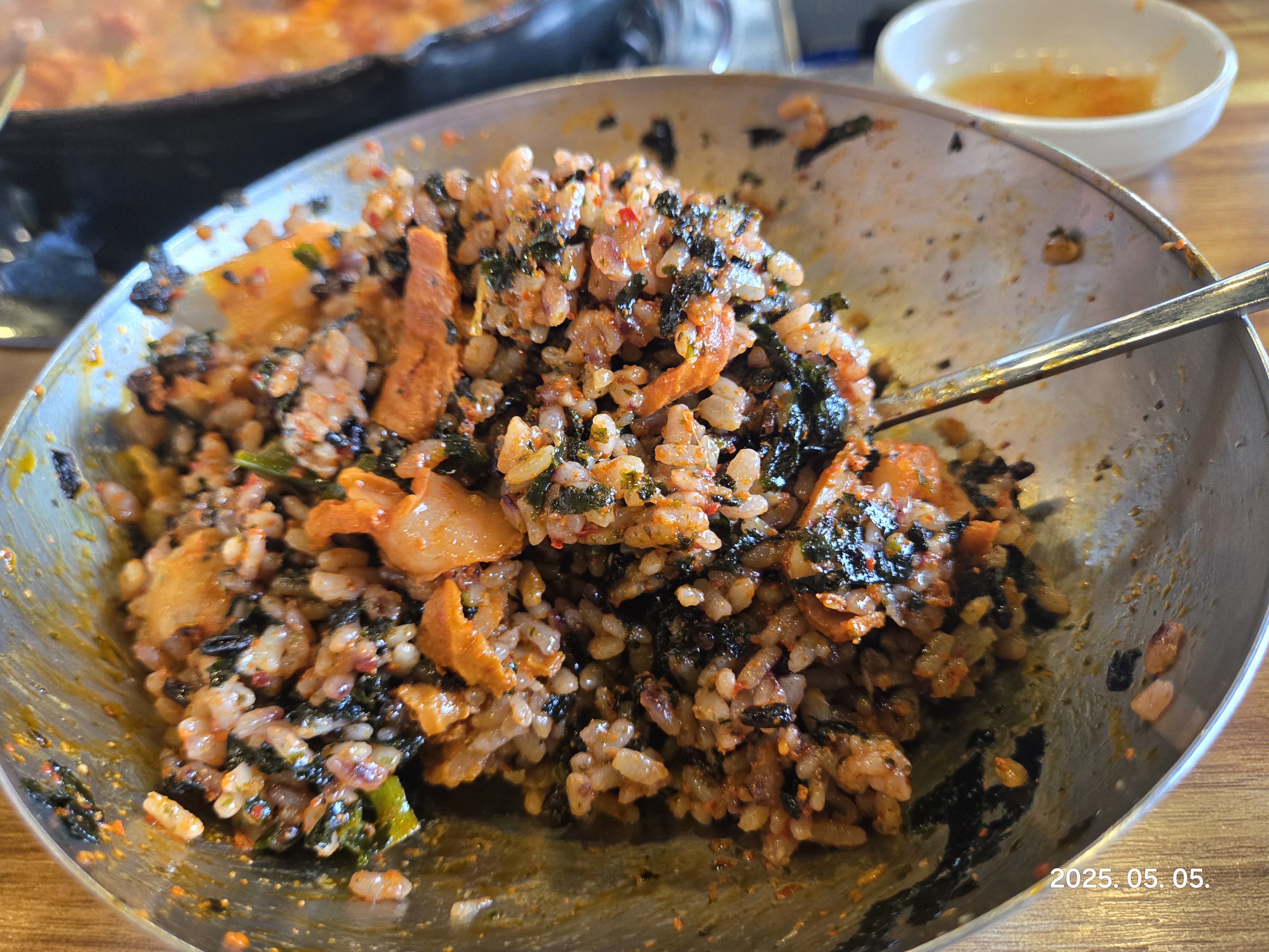 남은 양념에 밥 넣고 김가루까지 함께 볶아주셨는데,