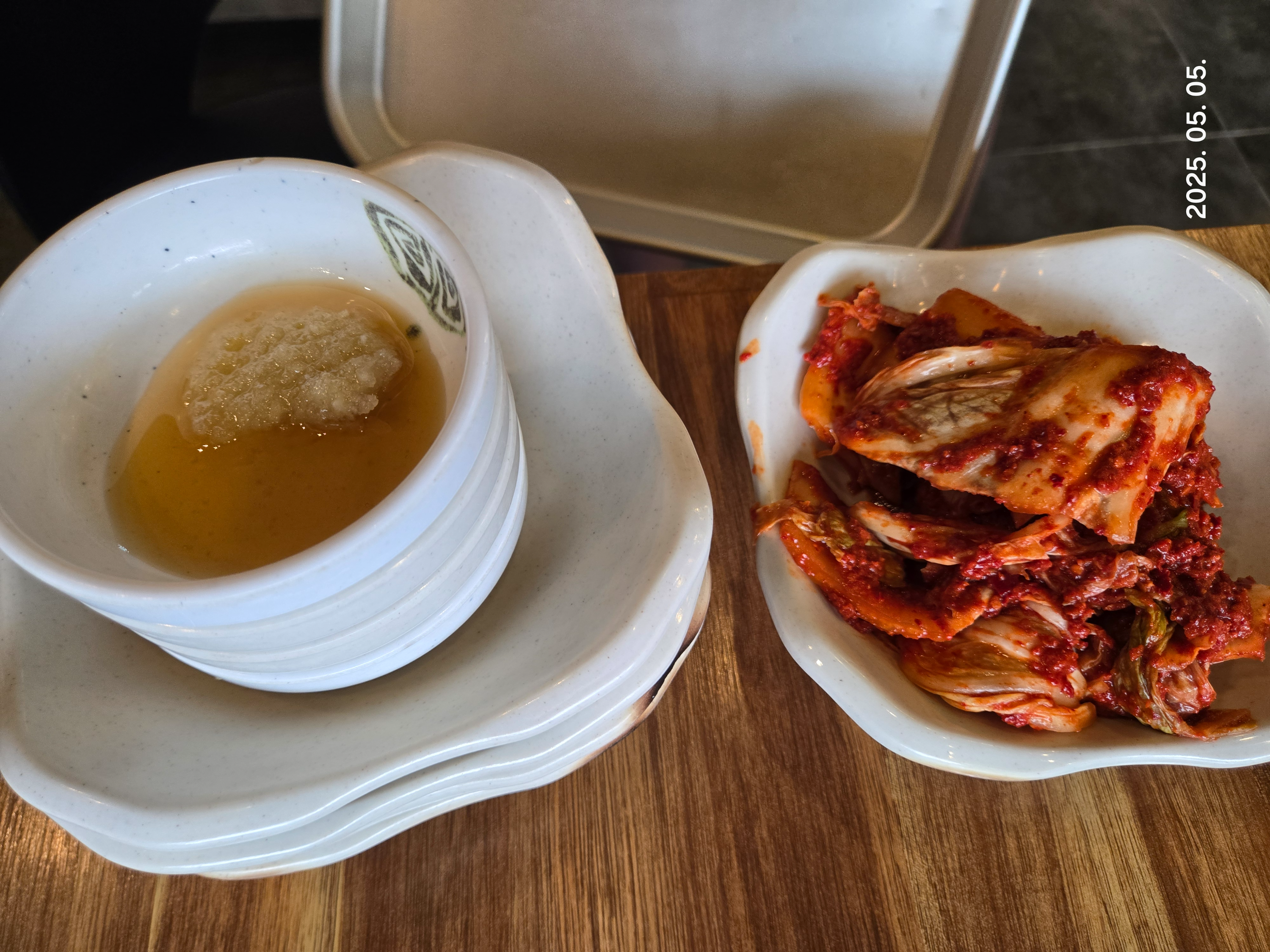 김치와 마늘 기름장 소스도 함께 나옵니다.