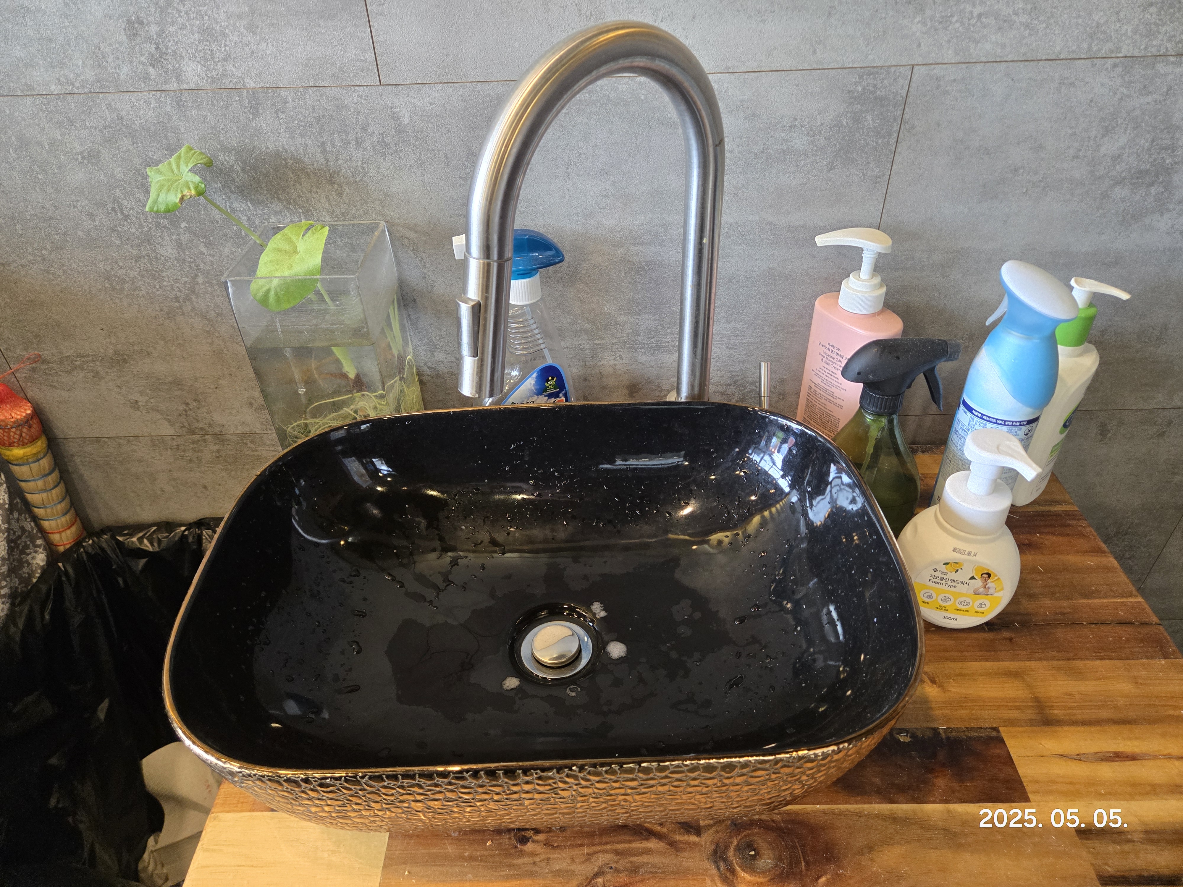 식당 내부에 손을 씻을 수 있는 세면대가 구비되어 있습니다.
