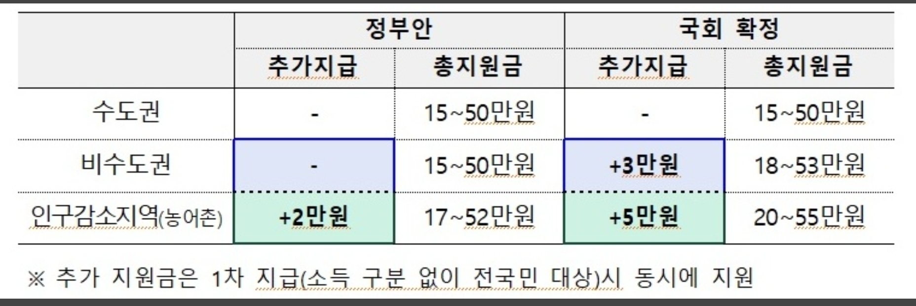 이번 추경은 단순한 재정 투입을 넘어, 실제 소비 진작 효과서민 체감도 제고를 중시한 구조로 설계되었습니다. 특히 소외 지역과 인구감소 지역에 대한 추가 지원이 포함되며, 서울 외 지역은 소비쿠폰 지원 비율이 최대 90%까지 상향됩니다.